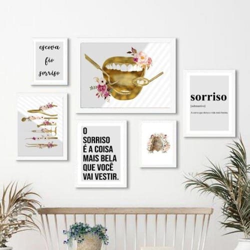 O Kit Composição 6 Quadros Odontologia Instrumentos Flores é perfeito para decorar qualquer ambiente da sua casa ou escritório. Composto por 6 quadros, sendo 2 quadros com medida 18x24cm, 3 quadros com 24x33cm e 1 quadro com medida 33x45cm, esse kit vai deixar suas paredes muito mais bonitas e cheias de estilo.
