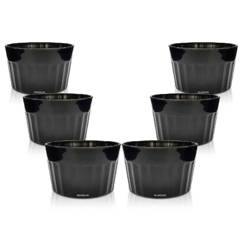 O ramequim é ideal para servir doces, sobremesas, molhos e muito mais, perfeito para decorar sua mesa com petiscos e porções de degustação, deixe sua mesa com mais elegância com os copos ramequim da krystalon. Características: material: plástico polipropileno não é ceramica/porcelana, altura: 4,5 cm, diâmetro: 7,5 cm, capacidade: 90 ml, cor: preto, tamanho: ùnico, quantidade: 6 peças