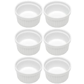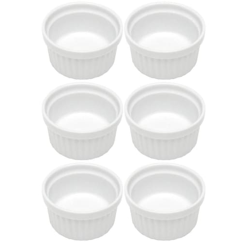 Conteúdo: 6 ramekins de porcelana;