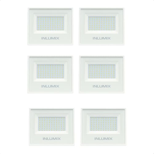 Kit 6 Refletor Holofote de Led 50W Branco Frio 6500K Branco Características Gerais do Produto: Benefícios do produto: Produzido com materiais de qualidade, economia de energia e design slim. Dimensões AxLxP CM : 11,5 X 13 X 2,5 Formato: Retangular Cor da luz: 6500K Frio Produzido em: Alumínio, Aço, Vidro e Componentes Eletrônicos Voltagem: Autovolt em 110v e 220V Alimentação: Energia elétrica Cor acabamento: Branco Potência: 50W Fluxo luminoso: 4000 Lumens Eficiência luminosa: 80 Lm/W IRC: 80 Ângulo de abertura: 120 : 1 ano junto ao fabricante Aplicação: Externo Vida útil: 20.000 horas Acompanha lâmpada: Não necessita, LED já integrado Grau de proteção: IP65 Ajuste de intensidade Dimerizar : Não Acompanha o produto: 06 Refletor Led : 1 ano junto ao fabricante Marca: Não Informado