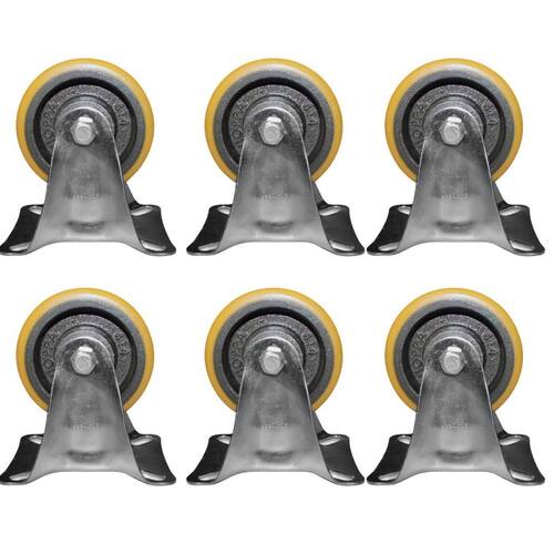 Kit 6 rodinhas 100mm ferro com poliuretano 4'' com placa fixa