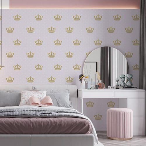Kit 6 rolos papel de parede adesivo rosa coroa dourada 3,0m Conteúdo do kit:- 06 rolos de papel de parede.- 01 espátula.- 01 manual de aplicação. Medidas de cada rolo:- altura: 3,0 metros.- largura: 50 centímetros. Características:- produzido em vinil adesivo antirreflexo, próprio para decoração.- impresso em alta resolução de imagem e cores vivas.- pode ser limpo com pano úmido e sabão neutro.- material liso, não possui textura ou relevo.- anti mofo, não possui cheiro e não propaga fogo.- os rolos se encaixam lateralmente, dando continuidade ao desenho. Onde posso aplicar- pode ser aplicado em qualquer superfície lisa como paredes, madeiras, mdf, vidros, metais, gesso, etc.- não aplicar em superfícies úmidas, porosas ou com relevo. É necessário que a parede esteja amaciada. Vantagens:- papel de parede adesivo, não necessita de cola para a aplicação.- produto de fácil aplicação.- por ser material adesivo e não necessitar de cola, não faz sujeira na hora da aplicação.- impressão em alta qualidade.- renove seu ambiente de maneira fácil e rápida.