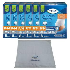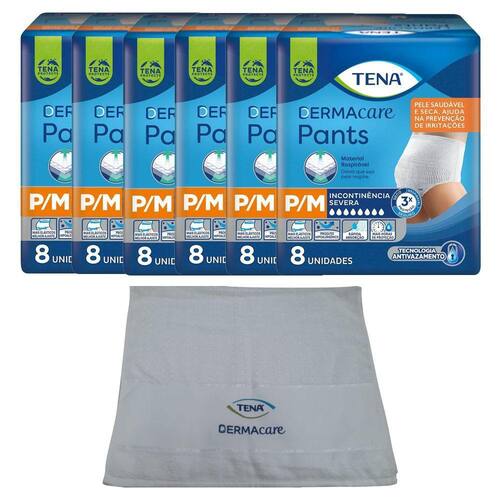 Kit Contém: 6 Pacotes de Roupas Íntimas Tena Dermacare Pants Ultra P/M com 8un + Toalha Dermcare Tena