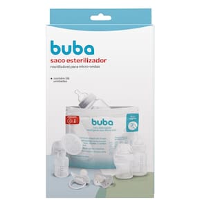 O Saco Esterilizador Reutilizável para Micro-Ondas da Buba elimina 99,9% de germes e bactérias.