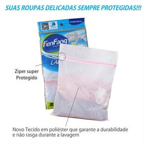 Saco em poliéster para lavar roupas delicadas, ideal para peças íntimas entre outros. Durante a lavagem protege suas roupas do entrelaçamento dos fios e da deformação da máquina de lavar.