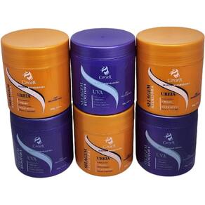 Selante uva cavier cosméticos Composto por aminoacidos, vitaminas e queratina hidrolisada e oleo de semente de uva que além de alisar, tratam os cabelos. Deixando-os com um liso natural, macios, com muito brilho e hidratados. Não amarelam ou desbotam os fios. A selagem redutora uva cavier é um tratamento para recuperar as massas capilares danificadas selando as escamas do cabelo, acabando com o frizz e reduzindo o volume. O tratamento age deixando os cabelos, macios, emolientes, com brilho e hidratados, sendo sua aplicação rapida e mais eficiente que qualquer hidratação. Esse tratamento devolve aos fios a massa capilar perdida ao longo do envelhecimento dos fios e pelas agressoes diarias como: sol, vento, chapinha , secador e outras quimicas. Modo de usar: após lavar os cabelos com anti residuos, retire o excesso da agua com o auxilio de uma toalha e aplique a selagem redutora uva cavier nos cabelos umidos, deixe agir por 10 minutos e proceder com a tecnica convencional de escovação e chapa. opicional . Enxague em seguida. === Selante ureia cavier cosméticos 6 peças É um excelente produto que promove um liso duradouro, é indicado para todos os tipos de cabelos e compativel com qualquer tipo de quimica. O tratamento alisa e reconstroi profundamente a estrutura dos fios, repoe a massa capilar perdida e desemborracha os fios emborrachados. Possui ação antifrizz. Composta por aminoacidos, vitaminas e queratina hidrolizada e ureia que alem de alisar, tratam os cabelos, deixando-os com um liso natural, macios, com muito brilho e hidratados. Não amarelam ou desbotam os fios. Modo de usar: após lavar os cabelos retire o excesso de agua com o auxilio de uma toalha e aplicar o selante de ureia respeitando 1,5 cm da raiz , deixar agir de 15 a 30 minutos e finalizar com escova e prancha opcional . Enxague em seguida.