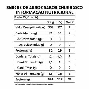 Diferenciais do Produto Feito com arroz, quinoa e lentilha Sabor intenso de churrasco Assado, leve e crocante Sem glúten e sem lactose Embalagem prática de 35g
