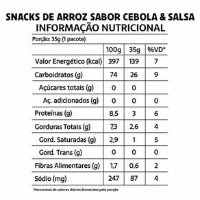 Diferenciais do Produto Feito com arroz, quinoa e lentilha Sabor marcante de cebola e salsa Assado, 100% vegetal Sem glúten e sem lactose Embalagem prática de 35g
