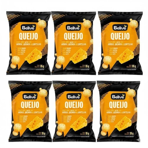 Kit 6 Snacks Crocantes de Arroz, Quinoa e Lentilha - Sabor Queijo 35g Sabor autêntico com leveza e crocância em cada mordida Os Snacks Crocantes de Arroz, Quinoa e Lentilha - Sabor Queijo 35g são a escolha ideal para quem busca um lanche saudável, nutritivo e cheio de sabor. Combinando o toque irresistível do queijo com a leveza dos grãos, eles oferecem uma experiência crocante e deliciosa, perfeita para qualquer momento do dia.