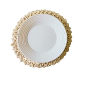 Kit com 6 Sousplat em Crochê Artesanal 33cm Off White e Dourado Sousplat de Crochê Artesanal - Elegância e Charme à Sua Mesa