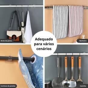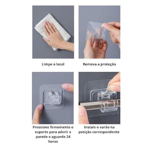 Instalação Simples e Rápida: Sem necessidade de furadeiras, parafusos ou ferramentas complicadas. Apenas remova a película protetora, pressione o suporte na superfície desejada, e pronto Alta Resistência e Durabilidade: Fabricado em plástico ABS de alta qualidade e adesivo de longa duração, o suporte resiste à umidade e ao calor, oferecendo fixação firme por muito mais tempo. Design Elegante e Versátil: Transparente e discreto, o suporte adesivo para cortinas combina com qualquer estilo de decoração, seja em salas, cozinhas ou banheiros.