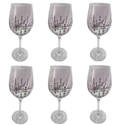Kit 6 Taças De Vidro Grande 490Ml Vinho Água Flor Lilás