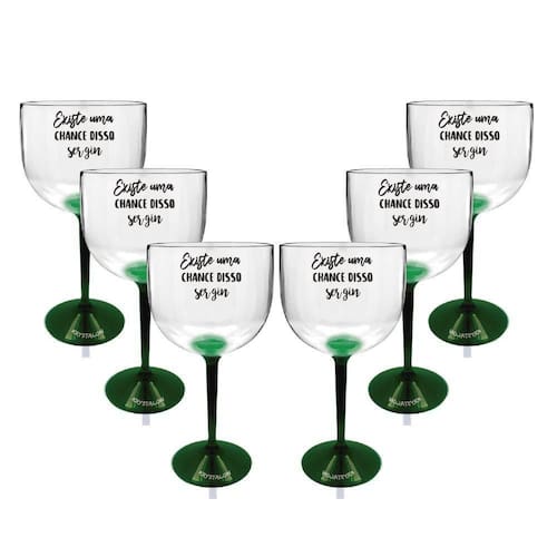 Kit 6 Taças Gin Bicolor Verde Acrílico Personalizada - Chance De Ser GinA Taça Gin Bicolor da KrystalON é perfeita para bebidas mais refinadas é resistente e durável, seja na sua festa, evento ou bar. Aproveite a nossa taça com base colorida que vem com a personalização exclusiva para você curtir com a galeraEspecificações: Material: Poliestireno Acrílico PS , Altura: 20 cm, Diâmetro: 10 cm, Capacidade: 550 ml, Cor: Copo Transparente e base Verde, Tamanho: único, Quantidade: 6 Peças