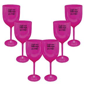 Kit 6 Taças Vinho Rosa Acrílico Personalizadas