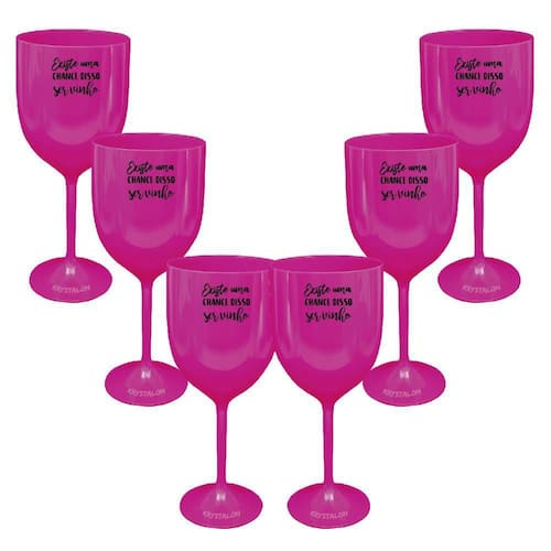 Kit 6 Taças Vinho Rosa Acrílico Personalizadas - Chance De Ser Vinho