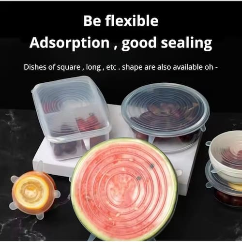 Conserve frutas, legumes e outros alimentos de forma prática e sustentável com as Tampas de Silicone Reutilizáveis. Projetadas para vedação perfeita, elas garantem que seus alimentos permaneçam frescos por mais tempo!