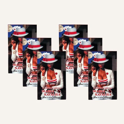 Kit 6 Tarô da Maria Navalha ou Maria Mulambo 36 Cartas Cor: 6 Tarôs da Maria Navalha Kit com 6 O Tarô da Maria Navalha 36 Cartas Pla+Man O nosso O Tarô da Maria Navalha composto por 36 cartas plastificadas de alta qualidade, este baralho é durável e fácil de manusear, ideal tanto para iniciantes quanto para praticantes experientes.Descubra a sabedoria e os mistérios da poderosa Maria Navalha com este tarô autêntico. Especificações técnicas: Cada baralho contém 36 cartas plastificadas e acompanha Manual de Orientação com 16 páginas e impresso com versão em português dentro da Caixa. Este Manual também está disponível em QR Code na Embalagem de Acesso ágil e instantâneo, é só apontar o aplicativo da câmera integrada do seu Smartphone ou Tablet Android ou IOS. Todas as cartas possuem identificação escritas em português. Enviamos a seu produto em até 24 horas após a confirmação de pagamento Contém 6 unidades Dimensões de cada caixa: 70 mm de largura x 35 mm de altura x 125 mm de comprimento Peso aproximado: 110 g cada Design impressionante, bem tradicionais em tons coloridos. Excelente qualidade de impressão, alta resolução e ilustrações bem definidas. Excelente deslize, portanto, são mais difíceis de amassar. Material: papel resistente Tamanhos das cartas 70 mm de largura x 120 mm de comprimento, espessura 0,5mm Tamanho certo para as suas mãos Caso tenha alguma dúvida nos mande mensagem que respondemos rapidinho para te ajudar da melhor forma possível Marca: Não Informado