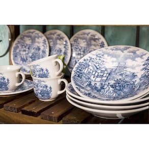 Kit 6 Tigelas Biona Cena Inglesa Oxford Cerâmica 500 Ml - Elegância para a sua cozinha. Se você é uma pessoa que ama história, a Xícara Cena Inglesa Biona foi feito pra você, fazendo uma viagem ao passado com paisagens históricas retratadas em tons de azul compõem uma louça tradicional e clássica, perfeita para todas as ocasiões Ambientada cena inglesa 2 Especificações: Uso: Resistente a micro-ondas, Resistente a lava-louças Material: Cerâmica Formato: Redondo Decoração: Estampado Cor: Multicor Conteúdo da embalagem: 6 Tigelas Bowl 500 ml Características Gerais do Produto: Acompanha o produto: 6 Tigelas Oxford Biona Cena Inglesa : contra no transporte Marca: Não Informado