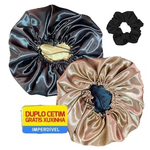 * Uso recomendado: Durante a noite * Tipo de cabelo recomendado: Todos * Modelo: Ajustável * Camadas: Dupla face (2 cores) * Itens Inclusos: 6 Toucas de cetim Ajustável dupla face e 6 Xuxinhas
