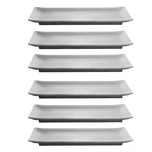 Kit 6 Travessas Retangular de Melamina para Sushi Sashimi 24,5x16,5cm Comida Japonesa Lyor Granilite