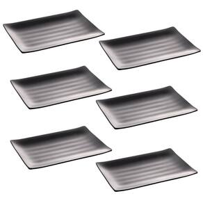 Kit 6 Travessas Retangulares de Melamina Pretas 24,5x16,5cm Comida Japonesa Sushi Sashimi.