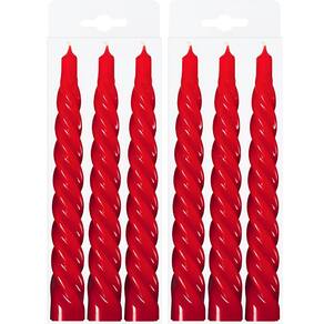 2 Conjuntos Com 3 Velas Decorativa Vermelha Torcida De 20cm e 25mm;