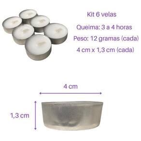Características: Contém 6 unidades Tempo de queima: Aproximadamente 3 a 4 horas