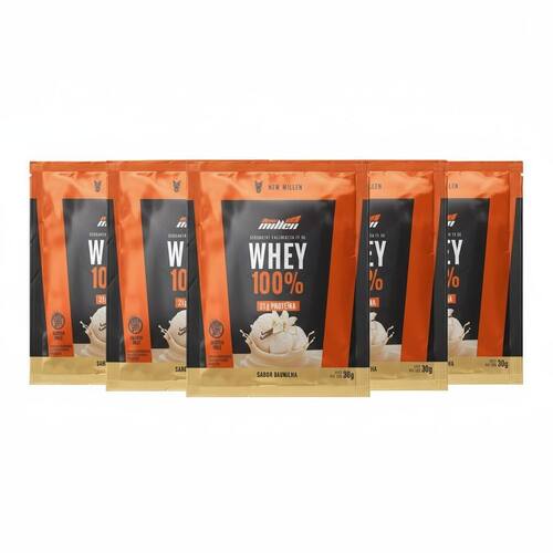 Whey 100% sachê dose única 30g - suplemento para crescimento muscular e recuperação o whey 100% em sachê de 30g da new millen é um suplemento proteico desenvolvido para fornecer proteínas de alta qualidade, auxiliando no ganho de massa muscular magra e na recuperação pós-treino. Formulado com proteína concentrada do soro do leite wpc , este produto oferece uma fonte rica em aminoácidos essenciais, incluindo bcaa e glutamina, fundamentais para o crescimento e reparo muscular. Com 21g de proteína por porção, o whey 100% é ideal para atletas e praticantes de atividades físicas que buscam maximizar seus resultados de forma eficiente e saudável. Composição e ingredientes - proteína concentrada do soro do leite wpc - não contém glúten. Benefícios - ganho de massa muscular: fornece 21g de proteína por porção, essencial para a construção muscular. - recuperação muscular: rico em bcaa e glutamina, promove uma recuperação rápida e eficiente após o treino. - fácil digestão e absorção: formulado para ser facilmente digerido e absorvido pelo organismo, otimizando os resultados. Sugestão de uso Diluir 1 sachê 30g em 150ml de água ou bebida de sua preferência. Consumir uma vez ao dia, ou conforme orientação . Marca: Não Informado Ean: 7908688883881