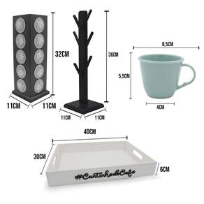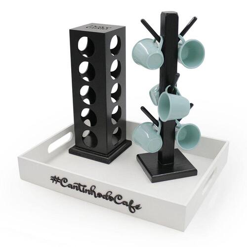 Kit 6 xicara porta capsulas para dolce gusto bandeja acrílico cores Cor xícaras: azul Composição do kit;6 xícaras1 bandeja1 suporte de xícaras1 porta capsulas para nespressoXícara 85ml acrílica As xícaras são muito bonitas e esse acrílico traz um charme a mais ao produto, deixando-o mais decorativo para a hora do café. Você pode usar em casa ou no escritório, ter sempre à mão sua xícara para tomar aquele cafezinho, capuccino e até um chocolate quente se estiver com vontade. Capacidade 85mlMaterial - acrílicoAltura - 5,5 cmLargura - 8,5 cm Bandeja cantinho do café versátil e multiuso Feita em mdf de 6mm com pintura em tinta acrílica na cor preta ela é ideal para organizar o seu lar, servir um cafezinho para os amigos, organizar papeis de escritório entre diversas outras utilidades. Bandeja versátil de qualidade, combinando com todos os ambientes no qual estiver Suas medias são40x30x6 externa 38,5 x 28,5 x 5,5 na parte interna Possui as laterais vazadas como uma alça. Suporte porta xícara caneca em 6 pinos xicaras Esse é o produto ideal para decorar o seu tão especial cantinho do café ou até mesmo presentear uma pessoa querida, além da beleza o porta xicaras é feito em mdf que é muito resistente, ideal para xicaras/canecas de até 240ml. Com esse porta xicaras você vai conseguir deixar seus armários muito mais organizados. Medidas suporte:Altura: 36 cmBase: 11x11Peso: 282gMaterial de composição: madeira pinus Porta cápsula vazado a laser nespresso. O nosso porta cápsulas, guarda com segurança e deixa organizado prendendo bem a cápsula sem deixar cair produto bem desenvolvido com muito charme e tons modernos para deixar o ambiente mais bonito Esse porta cápsulas tem ar moderno que mescla os tons e veio da madeira de pinus com o local em preto aonde é encaixado as cápsulas sendo assim um da destaque ao outro organize seu canto do café com as cápsulas sempre a mão e ainda decore o seu ambiente com certeza vai ser uma peça que vai chamar a atenção e tirar elogios Feito em pinus de reflorestamento natural e de mdf com pintura em preto tinta acrílica Comporta 28 capsulas nespressoMedidas 32x10x10 O pinus é natural, não leva verniz e nem seladora. Por se tratar de madeira natural deve haver variações na tonalidade e apresentar veios da madeira em locais distintos. - entregam para todo país Quem somos Marca: Dupétriz