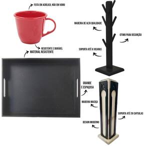 Kit 6 xicara porta capsulas para nespresso bandeja acrílico cores Cor xícaras: vermelho Composição do kit; 6 xícaras 1 bandeja 1 suporte de xícaras 1 porta capsulas para nespresso