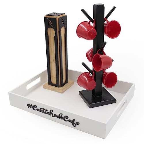 Esse é o produto ideal para decorar o seu tão especial cantinho do café ou até mesmo presentear uma pessoa querida, além da beleza o porta xicaras é feito em mdf que é muito resistente, ideal para xicaras/canecas de até 240ml. Com esse porta xicaras você vai conseguir deixar seus armários muito mais organizados.