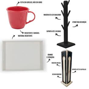 Kit 6 xicara porta capsulas para nespresso bandeja cores acrílico Cor xícaras: vermelho Composição do kit; 6 xícaras 1 bandeja 1 suporte de xícaras 1 porta capsulas