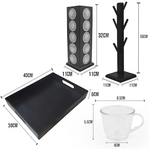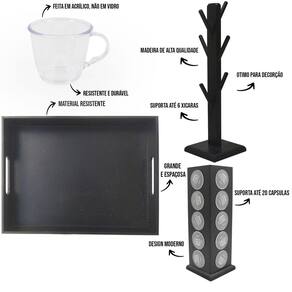 Kit 6 xicaras acrílico porta capsulas para dolce gusto bandeja cristal Composição do kit; 6 xícaras 1 bandeja 1 suporte de xícaras 1 porta capsulas para dolce gusto
