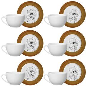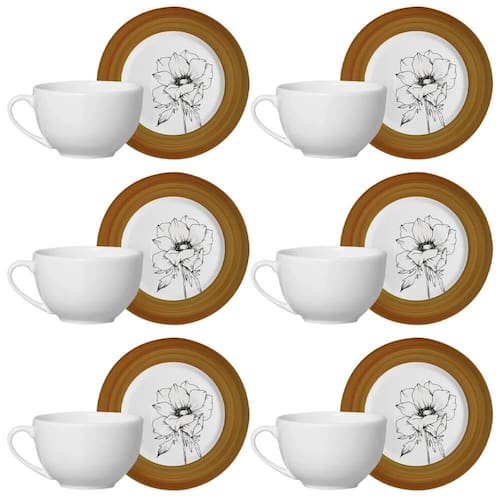 - Kit com 6 Xícaras e 6 Pires - Capacidade 250ml - Produzidas em Cerâmica Ean: 7908199461448