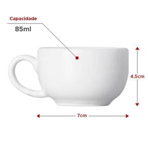 - Kit com 6 Xícaras e 6 Pires - Capacidade 85ml - Produzidas em Cerâmica Ean: 7908199444632