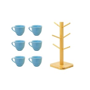 Kit 6 Xicaras Ceramica De Cha Azul 170Ml Com Suporte