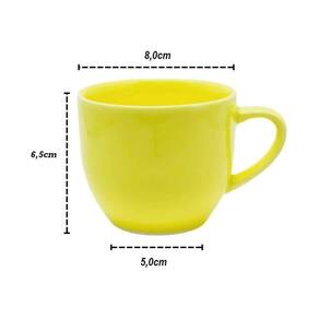 Xicara de ceramica Amarela 170ml Perfeita para Chás - 6 Unidades A Xícara Colorida 170ml é a escolha ideal para quem deseja unir estilo, praticidade e alegria no dia a dia. Feita em cerâmica de alta qualidade, combina durabilidade e design vibrante em uma peça que transforma qualquer pausa em um momento especial. Com tamanho perfeito para diversas bebidas, desde um expresso matinal até um chá da tarde, essa xícara traz charme e personalidade para a sua mesa. Destaques do Produto - Capacidade de 170ml, ideal para cafés, chás e outras bebidas - Produzida em cerâmica de alta qualidade - Resistente e durável para uso diário - Cores vivas que trazem estilo e alegria - Design moderno e versátil para qualquer ocasião Sugestões de Uso - Sirva um expresso ou cappuccino com mais charme - Use para chás e infusões no dia a dia - Combine diferentes cores para compor sua mesa - Presenteie alguém especial com um item útil e estiloso Material Cerâmica de alta qualidade Cuidados de Conservação - Lavar com esponja macia e sabão neutro - Evitar choques térmicos para maior durabilidade - Pode ser levada ao micro-ondas e lava-louças Marca: Não Informado