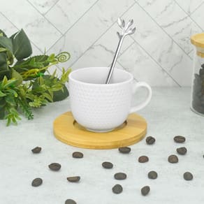 Kit 6 Xícaras de Porcelana com Pires de Bambu 100ml Eleve seu prazer de tomar chá e café com nosso Kit 6 Xícaras de Porcelana com Pires de Bambu 100ml. A combinação perfeita entre elegância e sustentabilidade. As xícaras de porcelana oferecem uma experiência única, enquanto os pires de bambu adicionam um toque natural. Com capacidade para 100ml, cada gole se torna especial. Adicione sofisticação à sua rotina