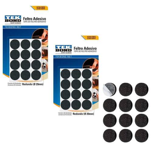 DescriçãoAlta qualidade e resistência, desenvolvidos para proteção contra riscos e batidas em pisos, móveis etc. Kit contém 5 cartelas com 60 peças redondos 20 mm Redondos: 20 mm;Contém: 60 unidades DetalhesO feltro protetor adesivo super cola tekbond absorve o impacto de batidas ou quedas e previne problemas com riscos, protegendo objetos, pisos e diferentes superfícies com eficiência, de forma prática e rápida.1. Ideal para usar em móveis para proteger pisos delicados;2. Evitar deslizamentos, riscos e batidas causadas pela movimentação de móveis;3. Possui excelente aderência em diversas superfícies.EspecificaçõesMaterial à base de viscose e poliéster.Aparência: feltroEspessura: 5 milímetrosTeor de sólidos %: 100 %Temperatura de trabalho: - 20 a + 80cResistência ao cisalhamento, n/mm: 2,5 n/mm2Capacidade de peso: 25 mpa Características1. Limpe bem a superfície onde deseja aplicar o feltro protetor adesivo, certificando-se de que o local esteja livre de poeira ou qualquer tipo de oleosidade.2. Retire o filme protetor da peça do feltro.3. Tome cuidado para não encostar seus dedos na área com adesivo.4. Aplique o feltro no local desejado, pressionando o feltro para uma boa fixação. as imagens são meramente ilustrativas