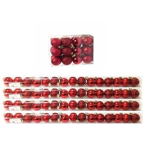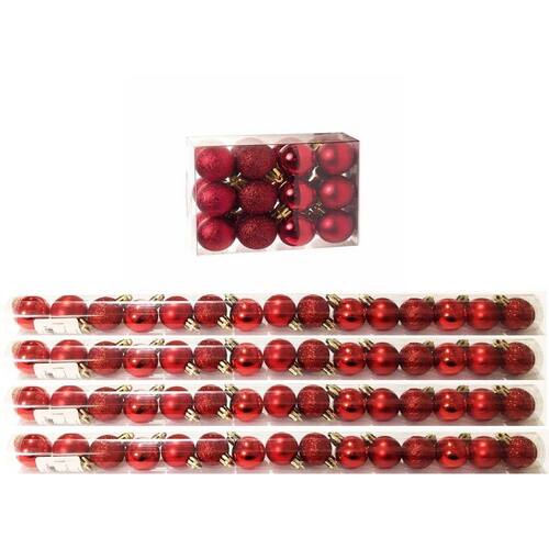 Kit 60 Mini Bolas De Natal Decoradas Mista Vermelho 3cm