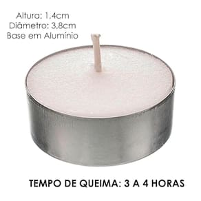 Kit 60 Velas Rechaud Lamparina Decoração de casamento e festas em geral 100% Parafina com Vasinho de alumínio As velas também são flutuantes, podem ser utilizadas na água O Kit Contém: - 60 Velas Rechaud nos Tamanhos de 1,4 cm Altura por 3,8 cm Diâmetro. - 60 Vasinho de Alumínio - Composição: Parafina pura e pavio. Marca: Home Candles Ean: 5690350051200