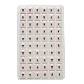 Apresentação em cartela plástica com adesivos individuais e com cantos arredondados.