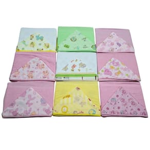 Especificações do Kit: Contém 3 Cueiros Grandes Estampados 80x80cm Contém 1 Toalha de Banho com capuz e forro de fralda 70x80cm Contém 1 Fralda de pano tecido quadriculado liso 68x68cm 100% algodão Contém 1 Fraldinha de boca tecido quadriculado liso 33x33cm 100% algodão