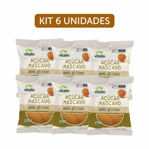 Kit 6X: Açúcar Mascavo Orgânico Vitalin 300G