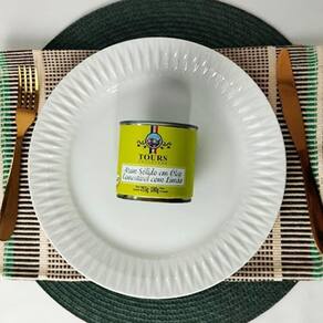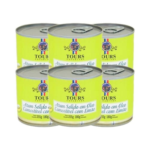 O atum sólido em óleo comestível com limão da tours é um produto artesanal exclusivo no mercado e envasado a mão. Consiste em um lombo de atum selecionado, cortado em segmentos transversais, tendo como líquido de cobertura óleo de soja refinado, salmoura e acompanhado de rodelas de limão.