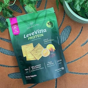 Cada porção do biscoito leve vitta protein sabor lemon pepper leve croc oferece 10g de proteína vegetal, provenientes de um mix de proteína de fava e ervilha, além de ser fonte de fibras e low carb.