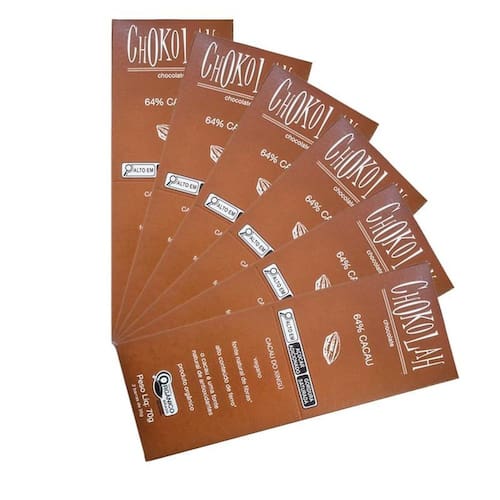 Kit 6x: chocolate 64% cacau com açúcar demerara orgânico chokolah 70g
