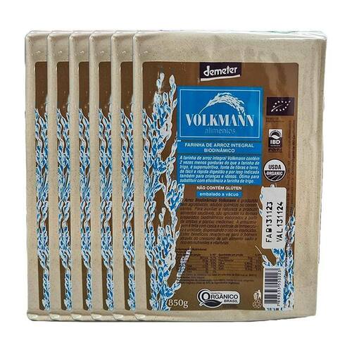 Kit 6X: Farinha de Arroz Integral Orgânico Biodinâmico Demeter Volkmann 850g A Farinha de Arroz Integral Orgânico Biodinâmico Demeter Volkmann é uma farinha produzida com o grão de arroz descascado, ou seja, composto do endosperma, germe e farelo. Esta farinha retém todos os nutrientes e o sabor do grão.
