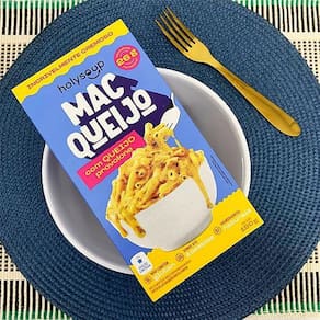 O macarrão macqueijo sem glúten holysoup é uma massa sem glúten feita com queijo provolone, além de possuir 26g de proteína por pacote, proporcionando uma comfort food irresistível e nutritivax000d