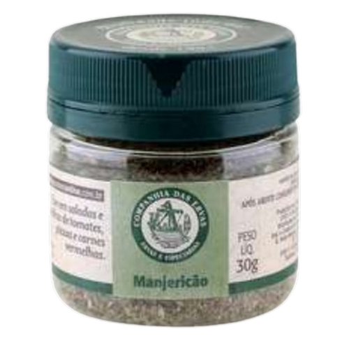 Ingredientes: Folhas de manjericão desidratadas e picadas. NÃO CONTÉM GLÚTEN.